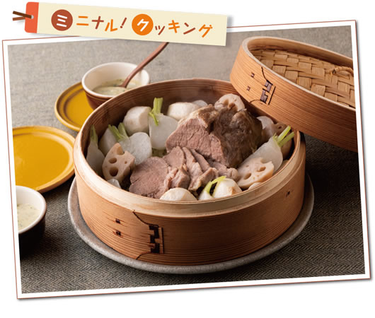 - B 鍋に湯を沸かし、せいろをのせて蓋をし、中弱火で約20分蒸す。