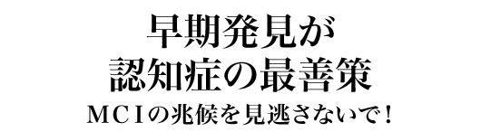 高齢化が進み、誰もが不安に思い、そして誰もが罹患する可能性がある認知症。しかし、早期に発見し適切な対策をとることで改善できるといわれています。その早期発見のポイントとなるMCI(軽度認知障害)について紹介します。