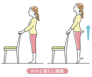 たとえば、立っていても椅子に座っていてもできるのが「かかと落し」です。